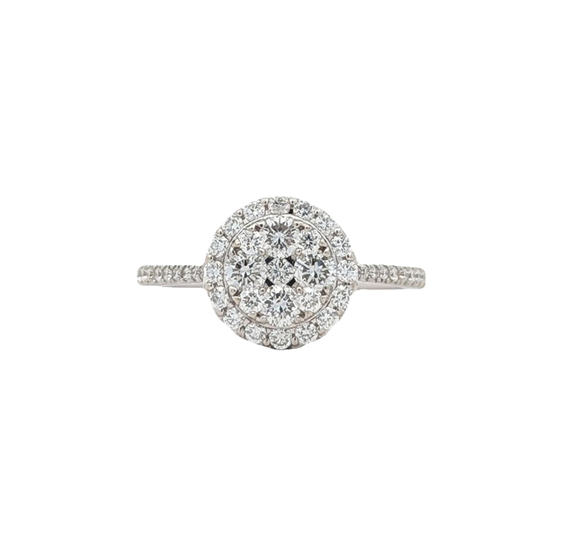 14KT White Gold 0.76ctw Diamond Cluster Ring Final Sale
