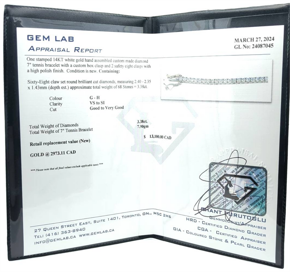 14KT White Gold 3.40ctw Diamond 7" Tennis Bracelet