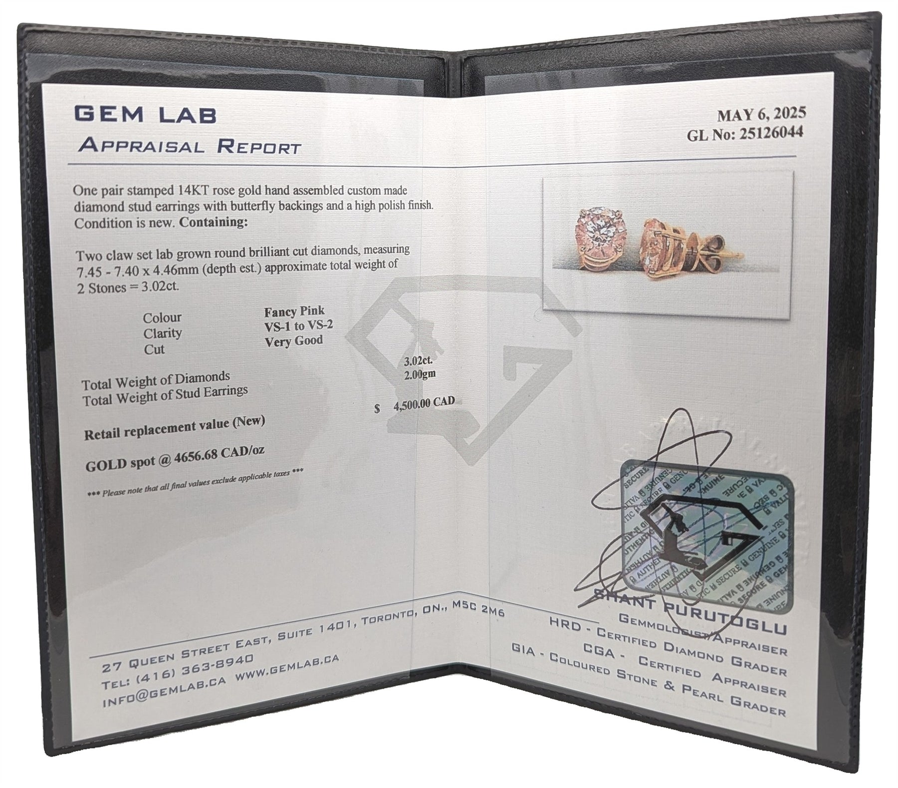 14KT Rose Gold 3.02ctw Lab Grown Pink Diamond Stud Earrings