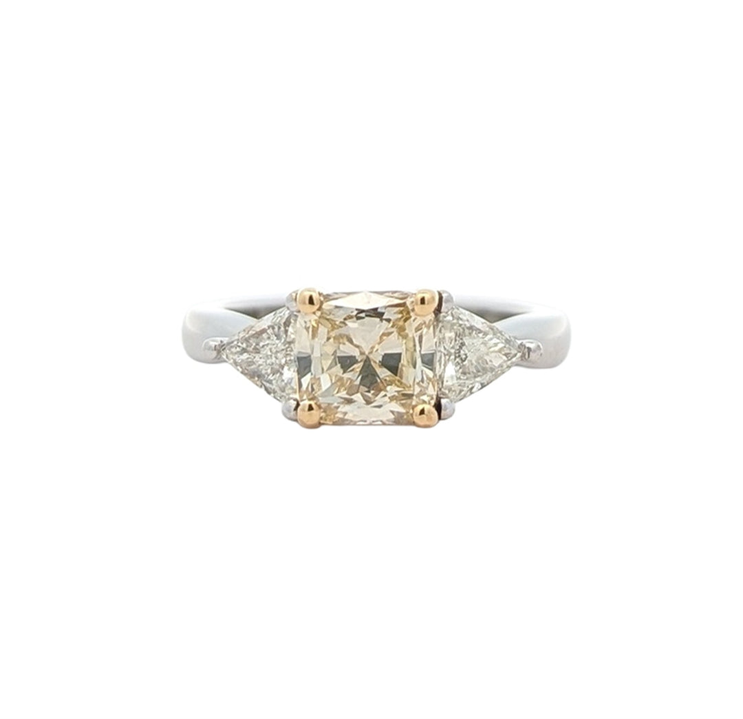 18KT Yellow Gold & Platinum 2.01ctw Yellow and White Diamond Estate Engagement Ring
