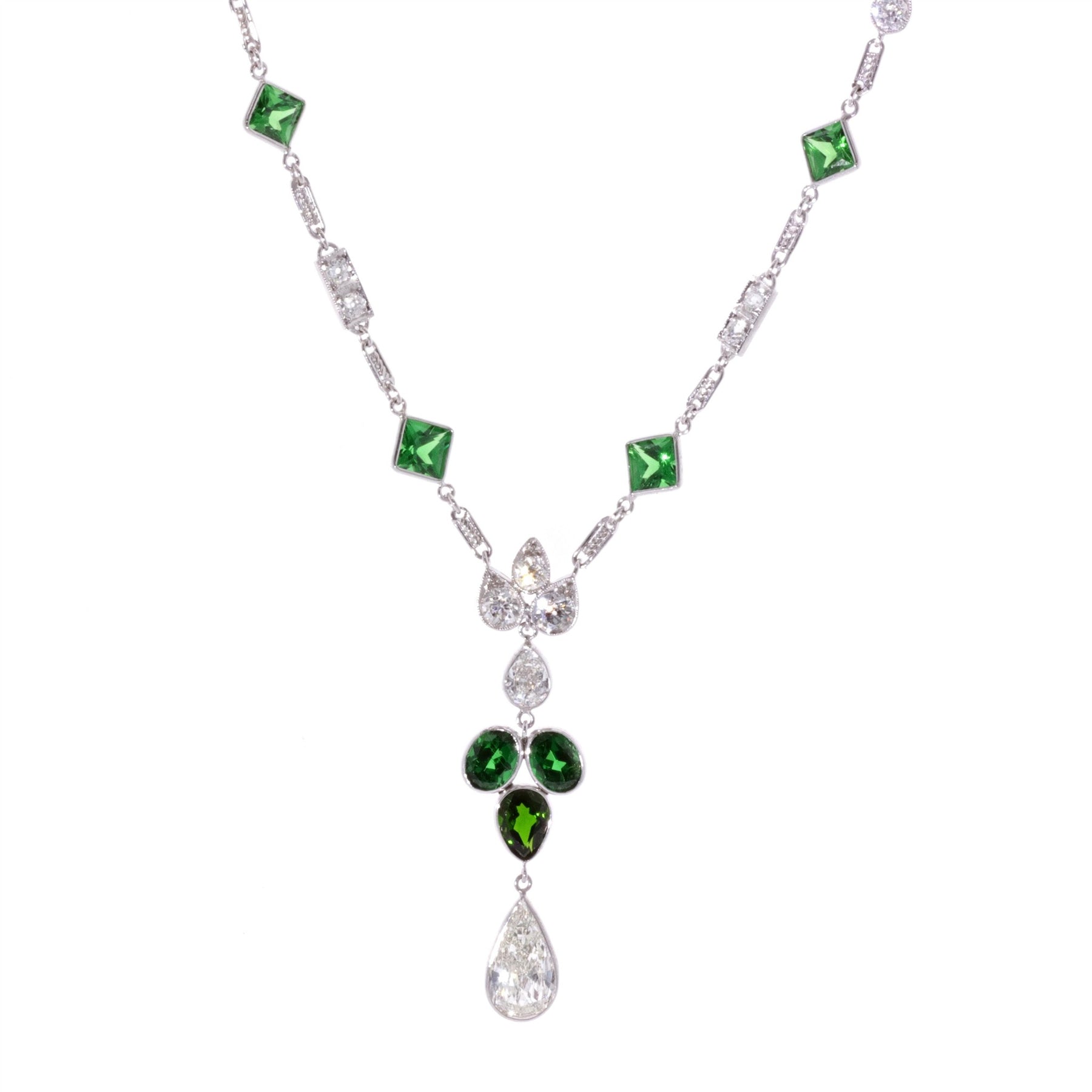 Platinum Natural Tsavorite Garnet and 4.11ctw Diamond 24" Estate Necklace