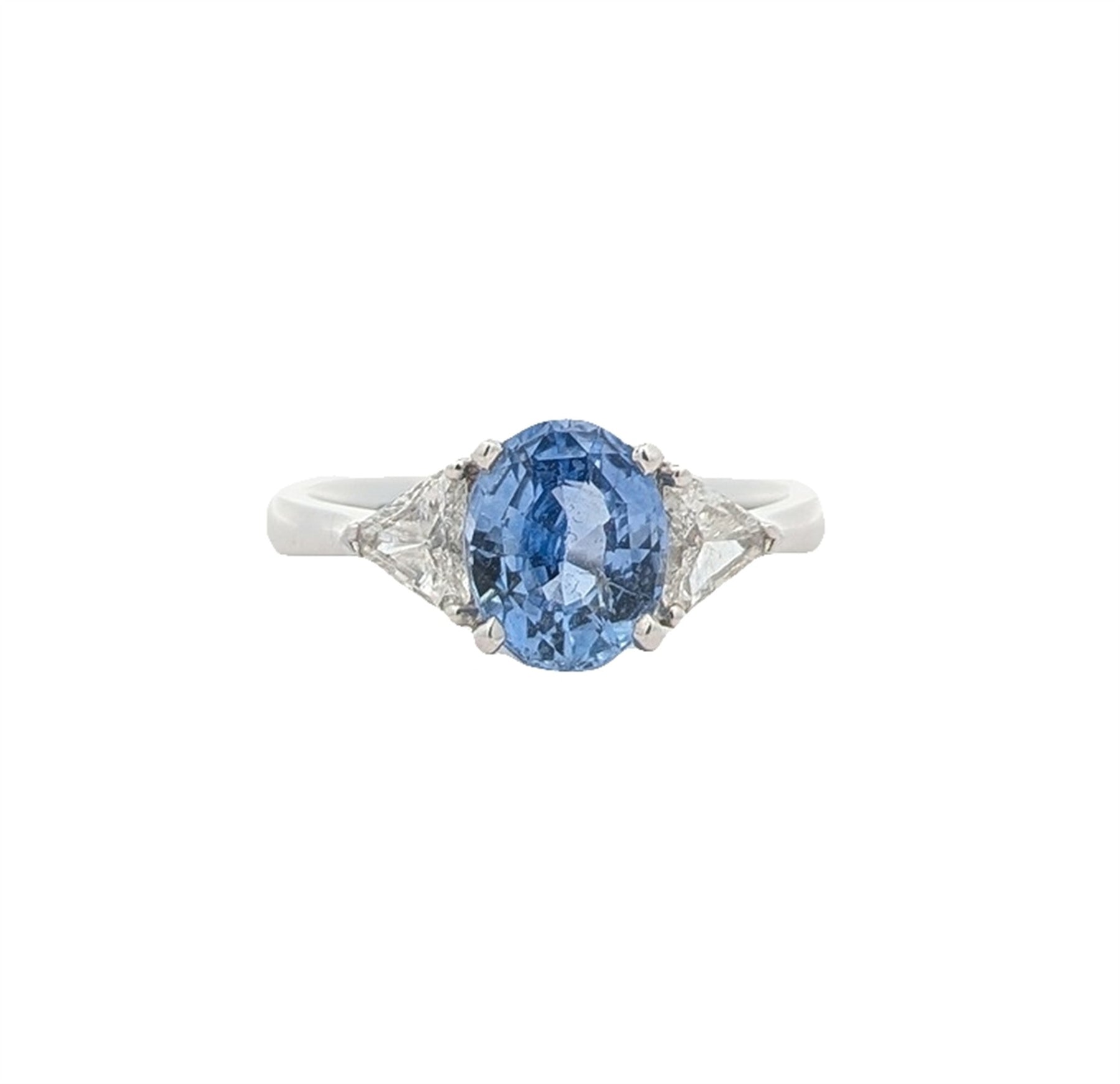 One claw set oval mixed cut natural blue sapphire, measuring 8.30 x 6.65 x 4.37mm, (depth est.) approximate weight of 2.03ct., clarity is slightly included, type II, medium, very slightly grayish, blue colour, (GIA B 5/3), cut is good.