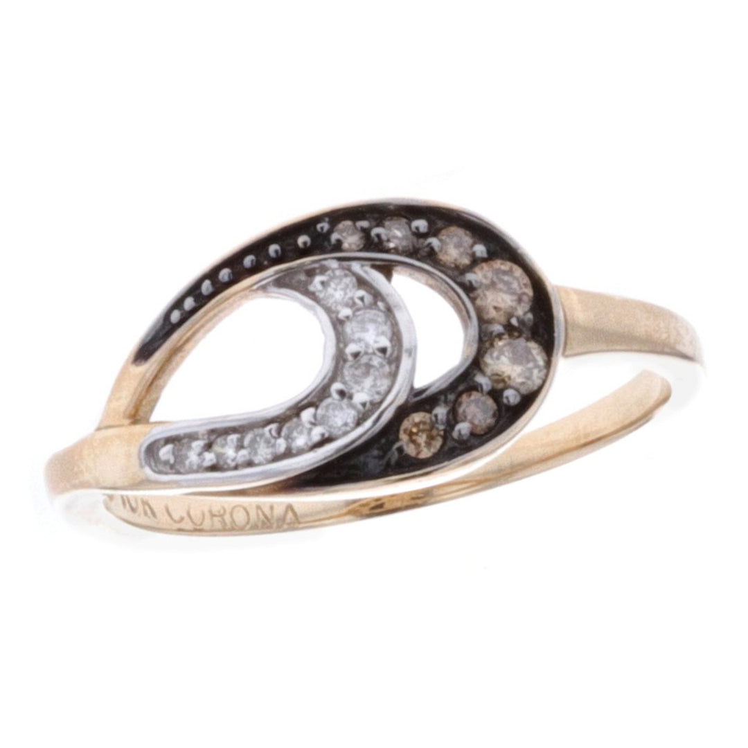 10KT Yellow Gold Brown and White Diamond Ring