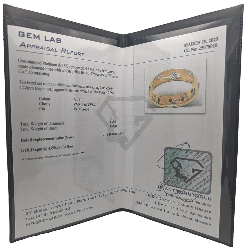 Platinum & 18KT Yellow Gold "Tiffany & Co." 0.25ctw Diamond Estate Band