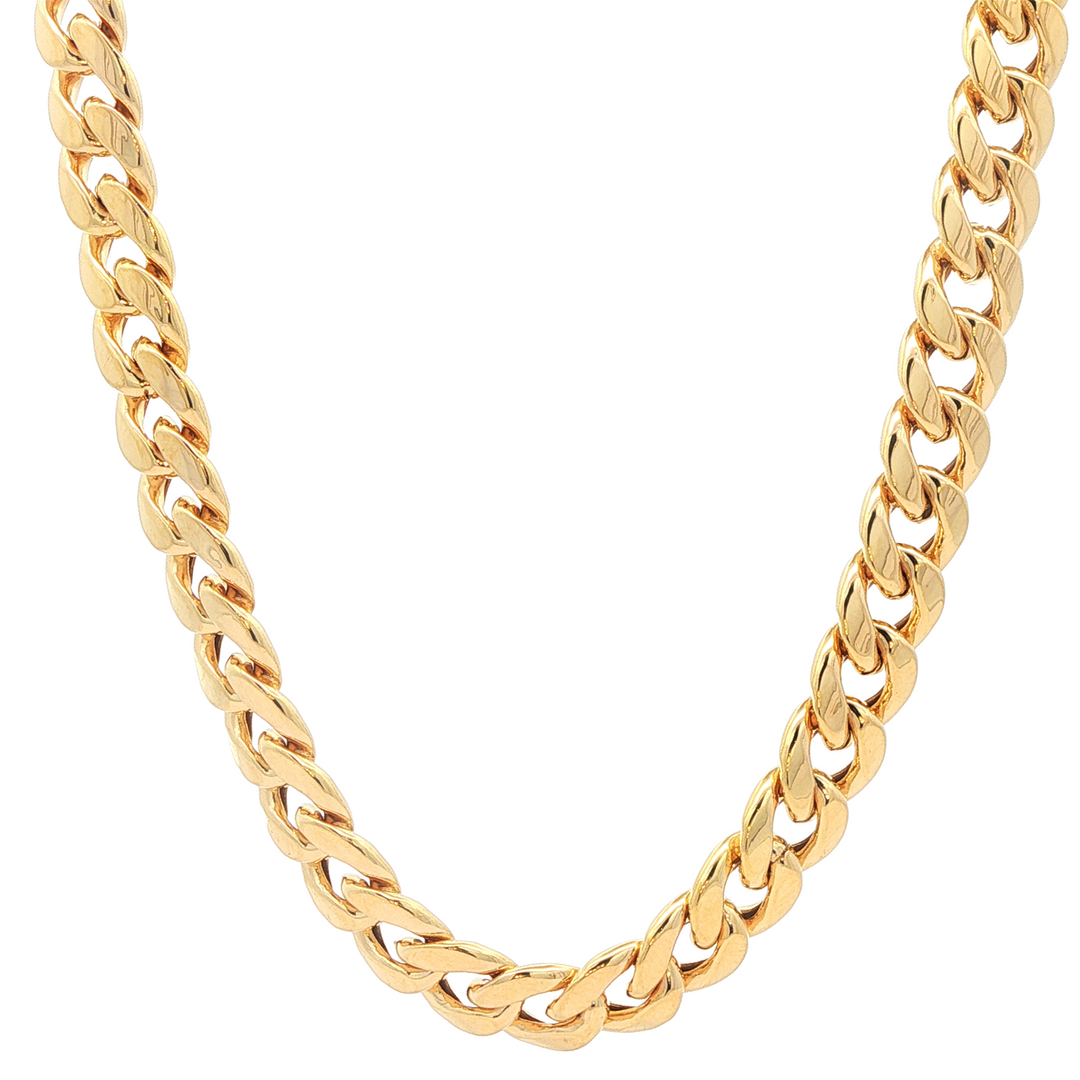 14K Yellow Gold 8mm Hollow Curb Link Chain 24 Inch