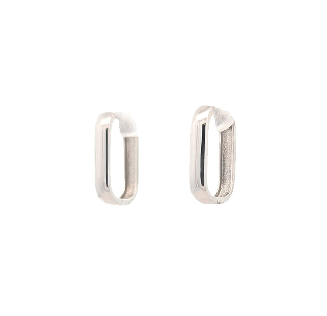 10KT White Gold 10mm Squared Oval Hoop Earrings