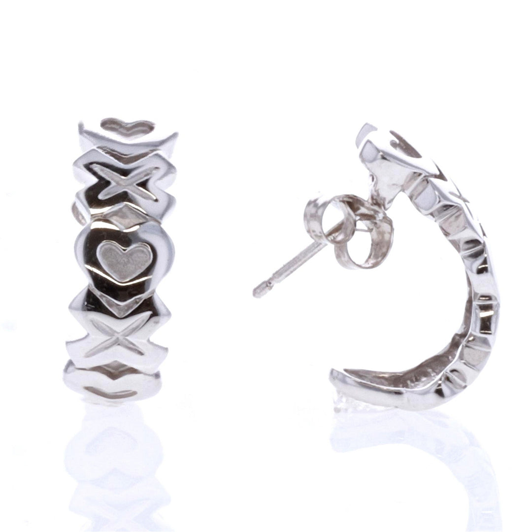 14KT White Gold Half Hoop Stud Earrings