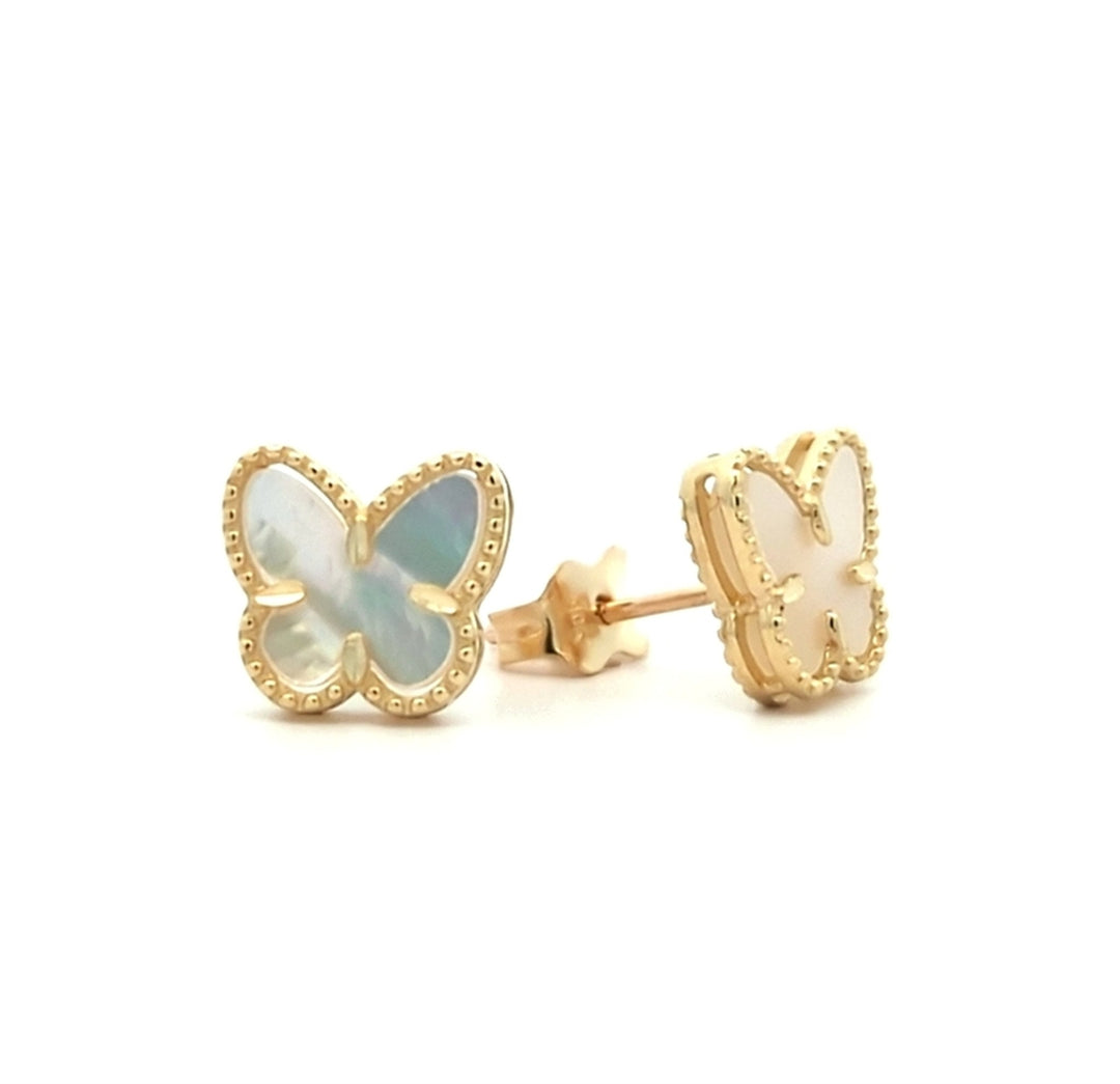 10K Yellow Gold Mother Of Pearl Butterfly Stud Earrings