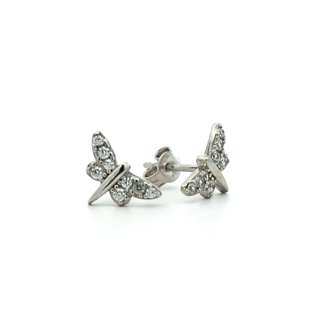10KT White Gold Cubic Zirconia Dragonfly Stud Earrings