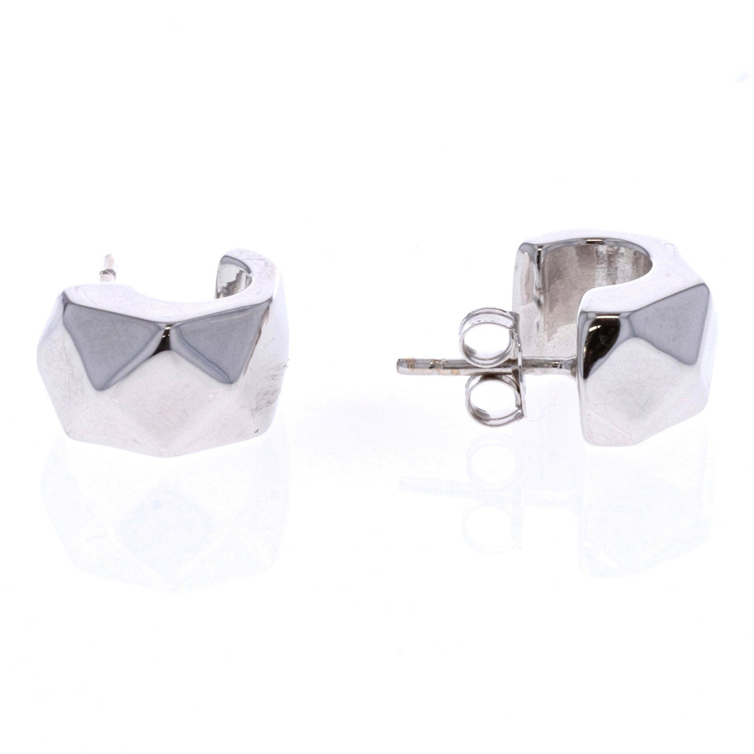 10KT White Gold Half Hoop Stud Earrings