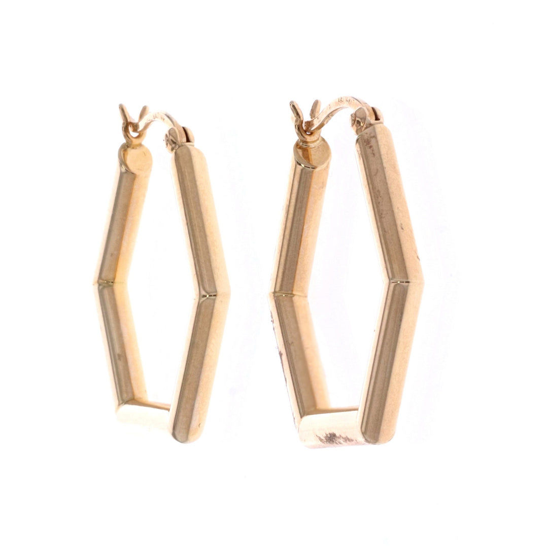 14KT Yellow Gold Hexagon Shape Hoop Earrings