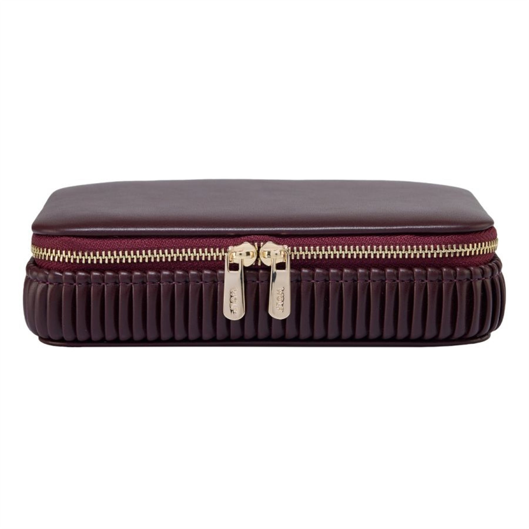 The Bella Jewelry Zip Case brings opulence and sophistication with her smooth vegan exterior, perfectly pleated sides and gold finish hardware. Inside find three LusterLoc lined compartments for your Jewelry, 2 ring rolls for rings or earrings and in the lid find 2 additional elasticated storage pouches. Simply beautiful.