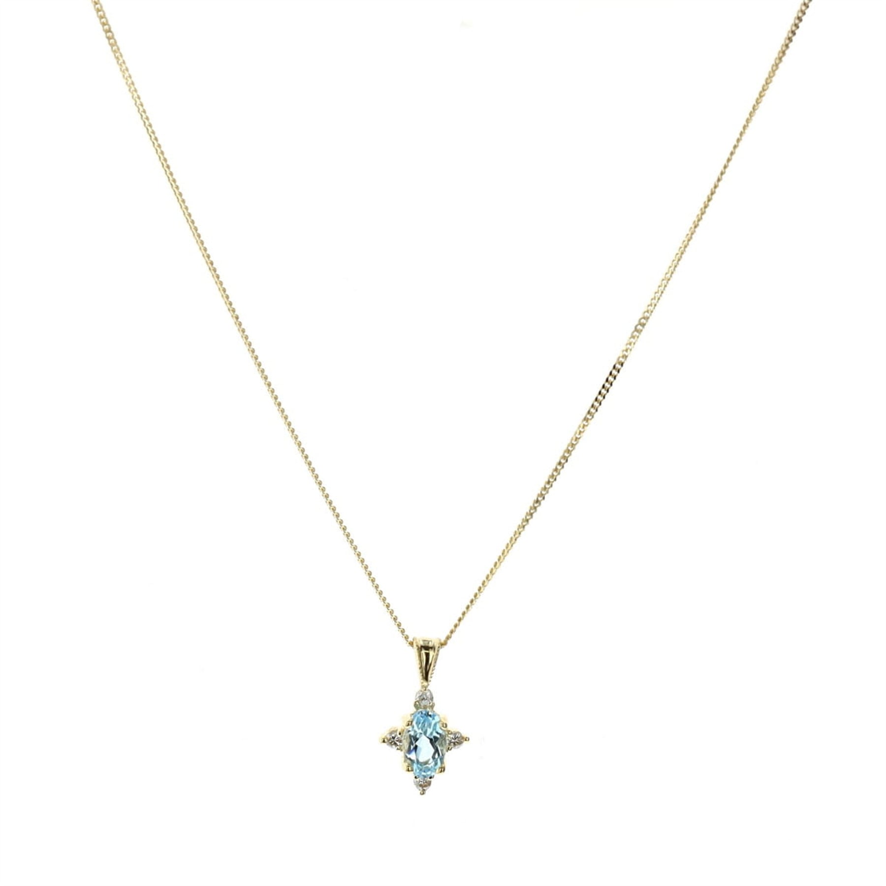 10KT Yellow Gold Aquamarine and 0.03ctw Diamond 18" Necklace