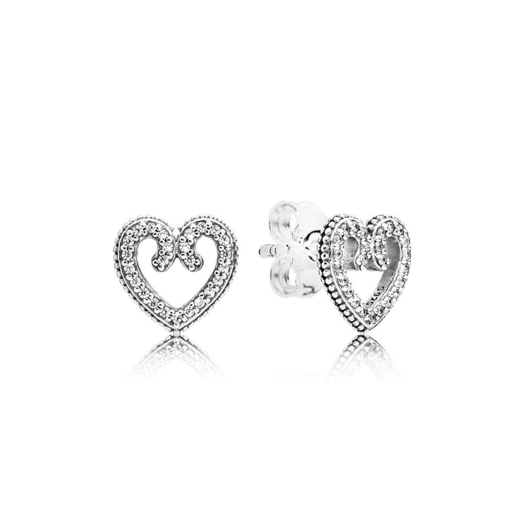 Heart silver stud earrings with clear cubic zirconia
