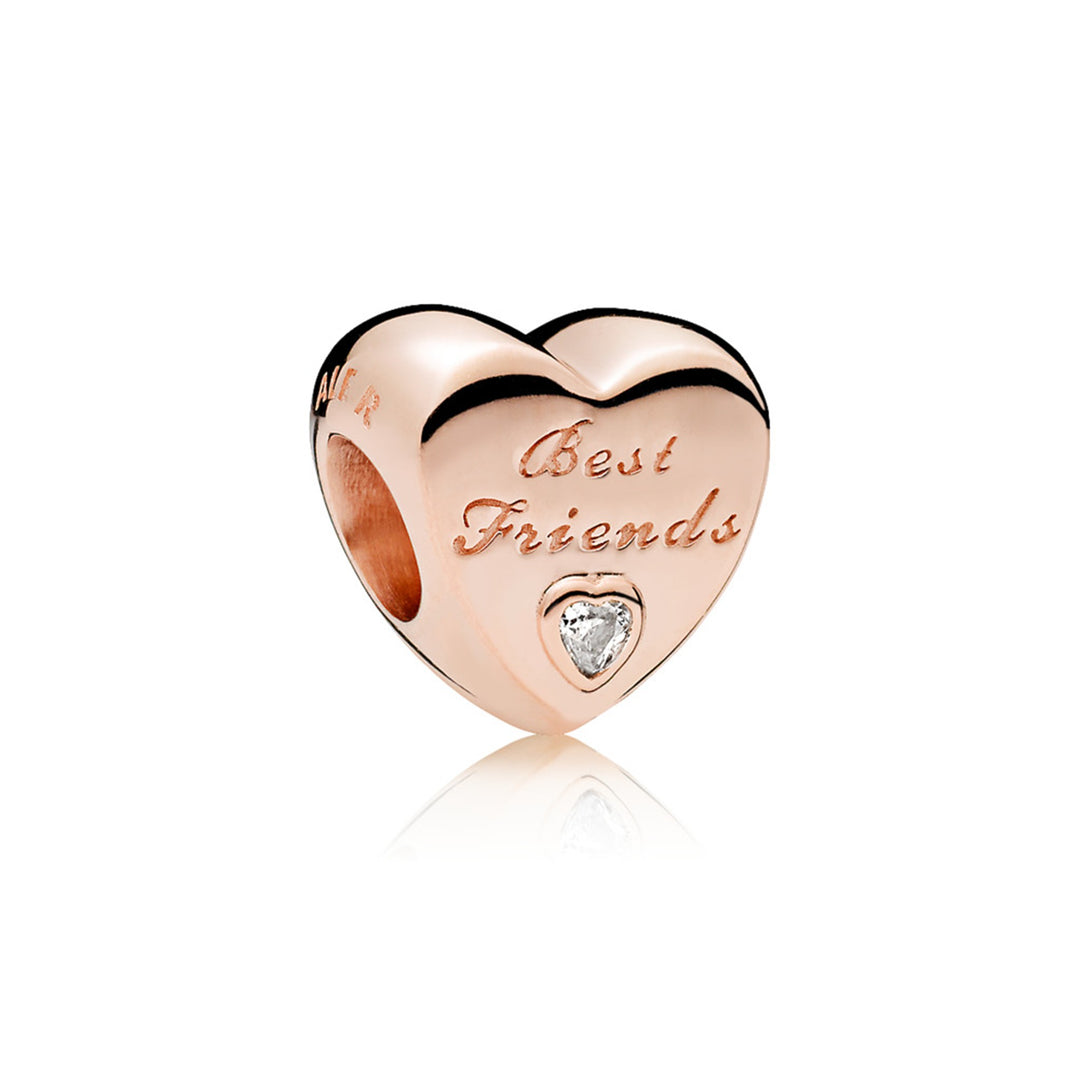 Heart charm in Rose with clear CZ and engraving "Best Friends"