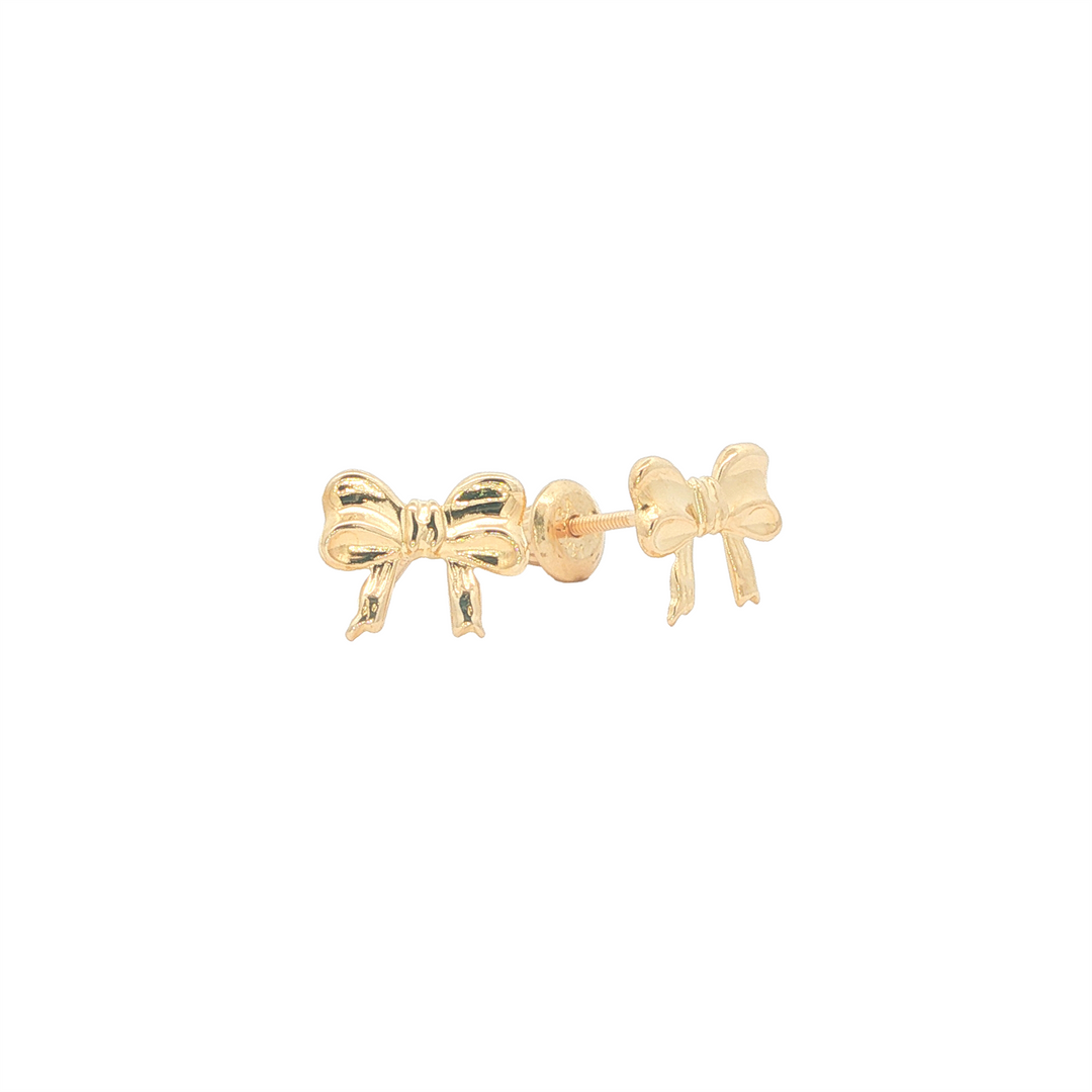 14K Yellow Gold Bow Safety Back Earrings
