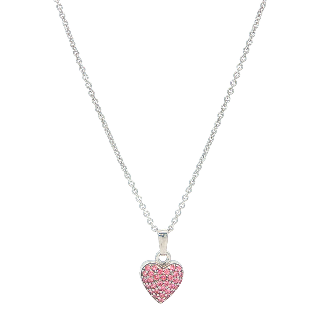Sterling Silver Heart Necklace with Pink CZ 15"