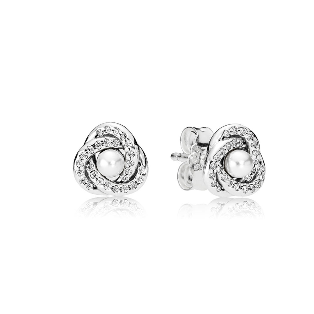 Luminous Love Knot, White Crystal Pearls & Clear CZ