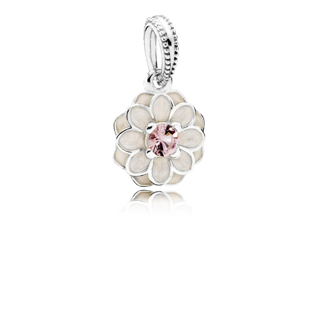Blooming Dahlia, Cream Enamel, Clear CZ & Blush Pink Crystals