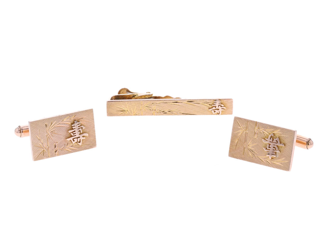 14KT Yellow Gold Estate Cuff Link and Tie Bar Set
