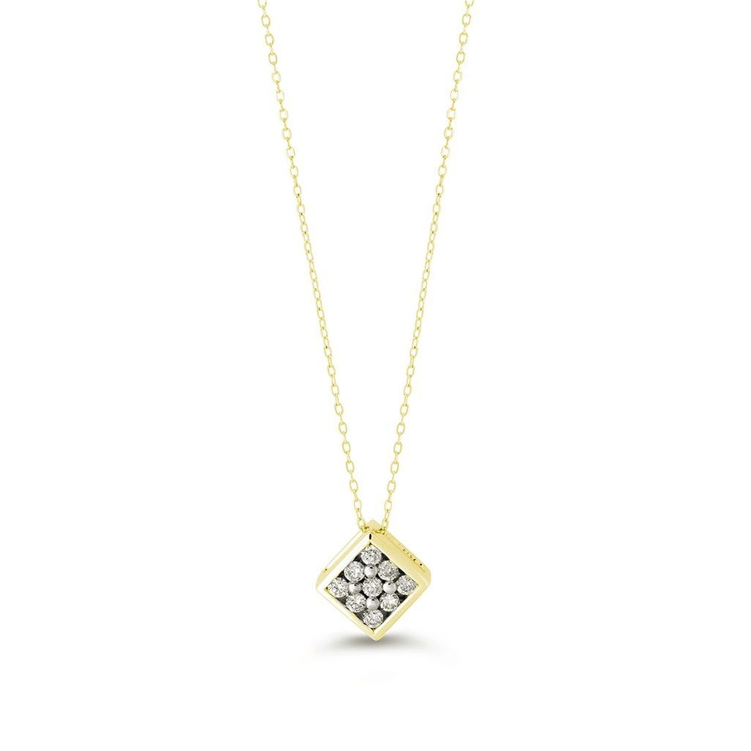 10KT Yellow Gold 0.09ctw Diamond Icicles Square Necklace