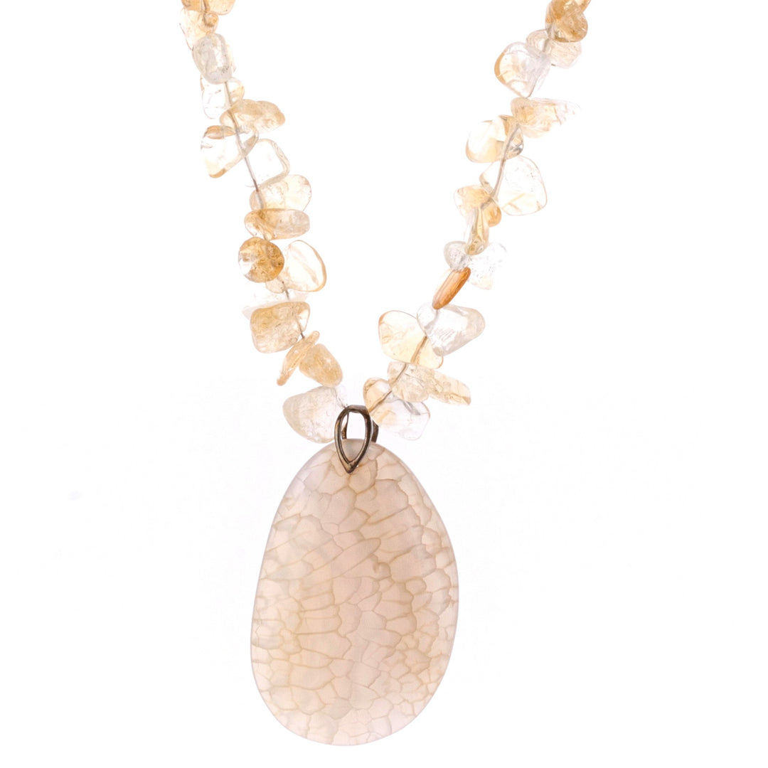 Crackle Agate with Citrine and Sterling Silver Chain
