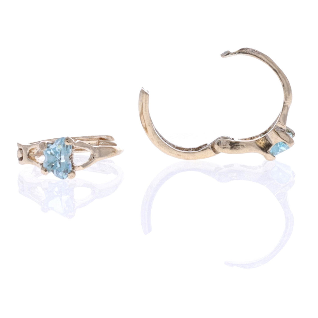10KT Yellow Gold Butterfly March Birthstone Huggie Earrings