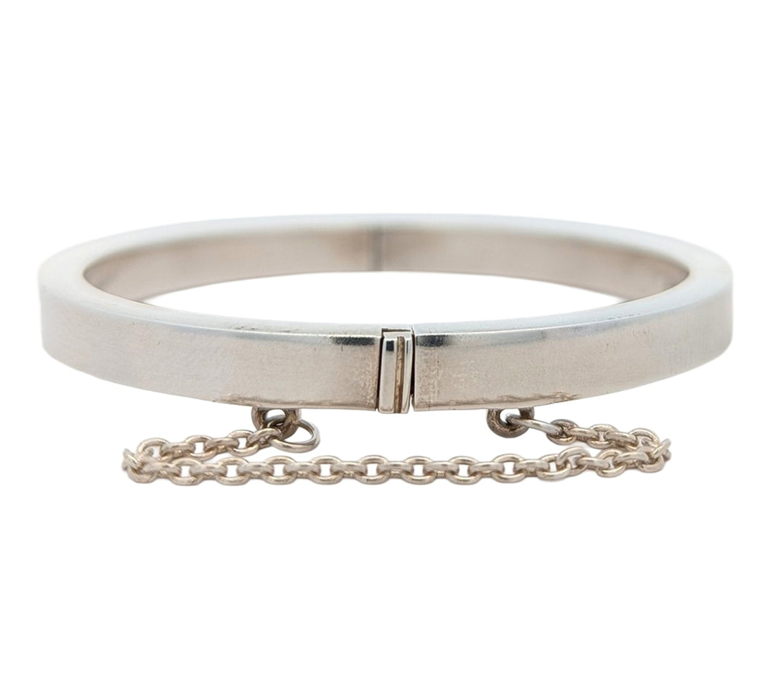 Sterling Silver Bangle with Safety Chain