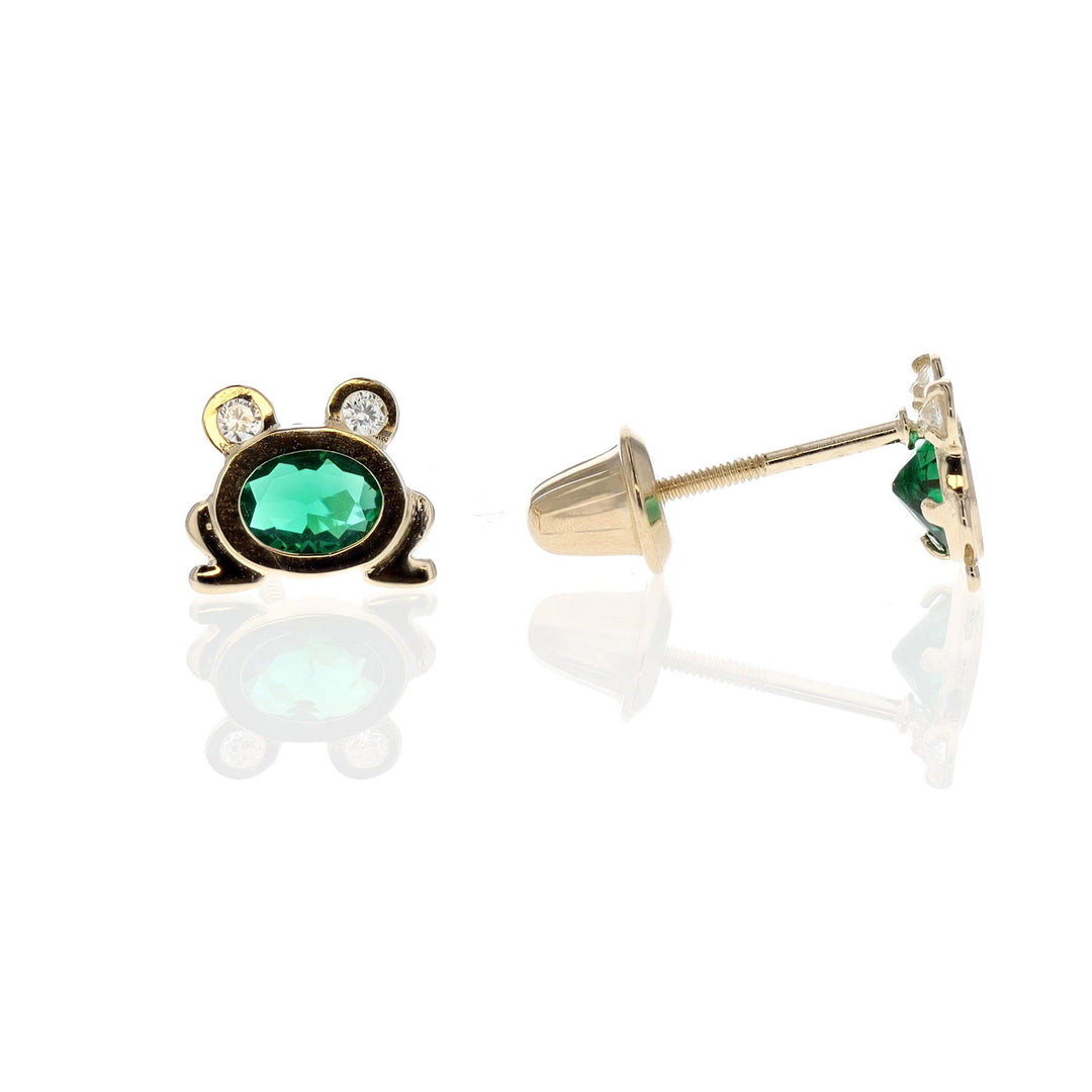 14KT Yellow Gold CZ Frog Stud Earrings
