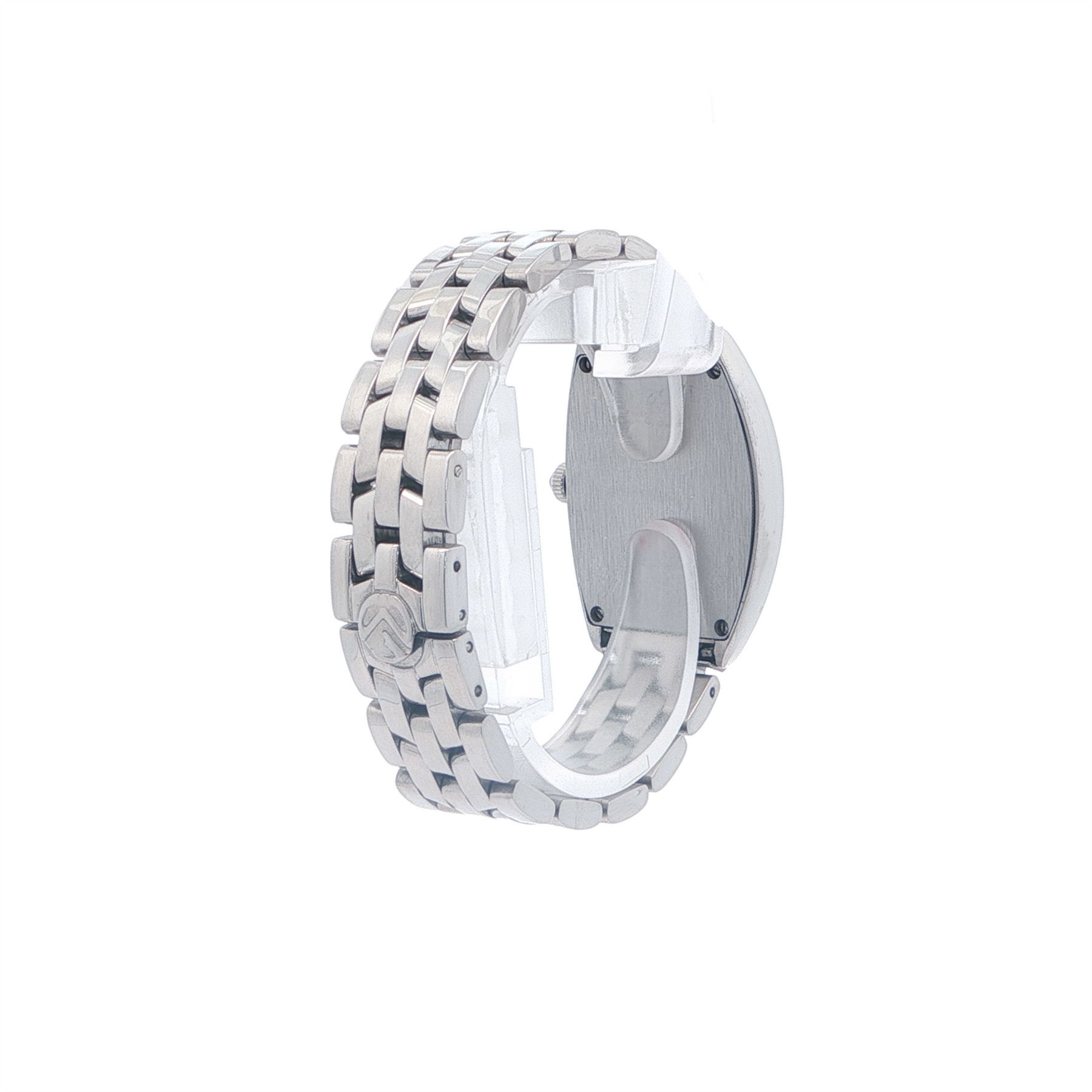 This Franck Muller Curvex is an elegant, ladies’ timepiece defined by its iconic tonneau-shaped case and refined simplicity. This example features a radiant silver sunburst dial that plays with light, paired with classic black Arabic numerals for easy reading and timeless style. Powered by a precise Swiss quartz movement, the watch balances everyday practicality with distinctive Curvex design DNA — curved profile, graceful proportions, and signature Franck Muller aesthetic. Finished on a steel bracelet and polished case, it’s a sophisticated choice for both daywear and dress occasions.
