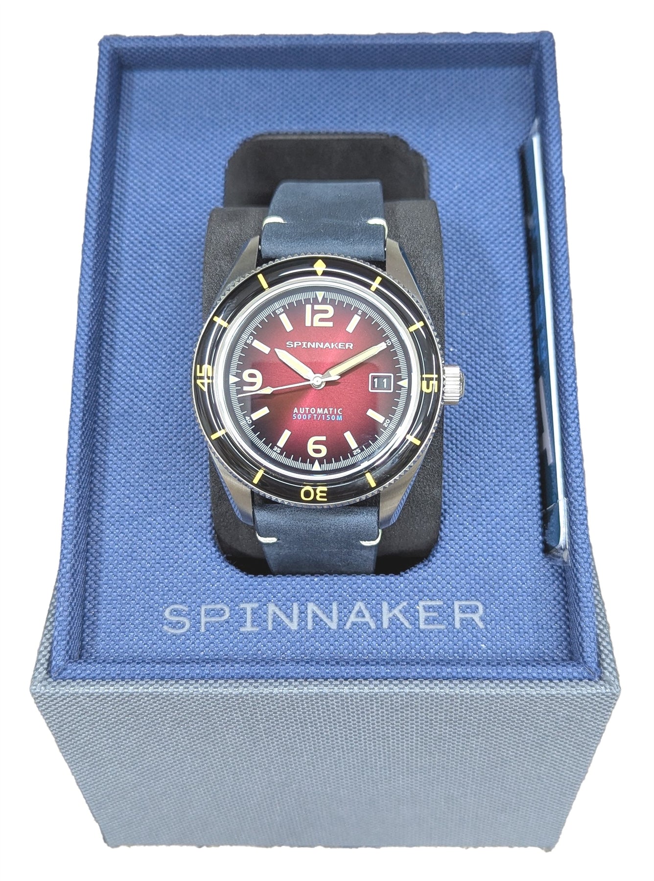 This Spinnaker Fleuss Automatic blends vintage dive watch aesthetics with modern performance. Featuring a bold 43mm stainless steel case, a sunburst oxblood red dial with luminous hands and indices, and a domed sapphire-coated lens, this timepiece offers both style and durability. Powered by a reliable automatic movement, it boasts 150m water resistance, making it a versatile companion for everyday wear and aquatic adventures. The unidirectional bezel and vintage-inspired leather strap complete the look, ensuring a distinctive presence on the wrist. A perfect blend of heritage design and contemporary engineering at an exceptional value.