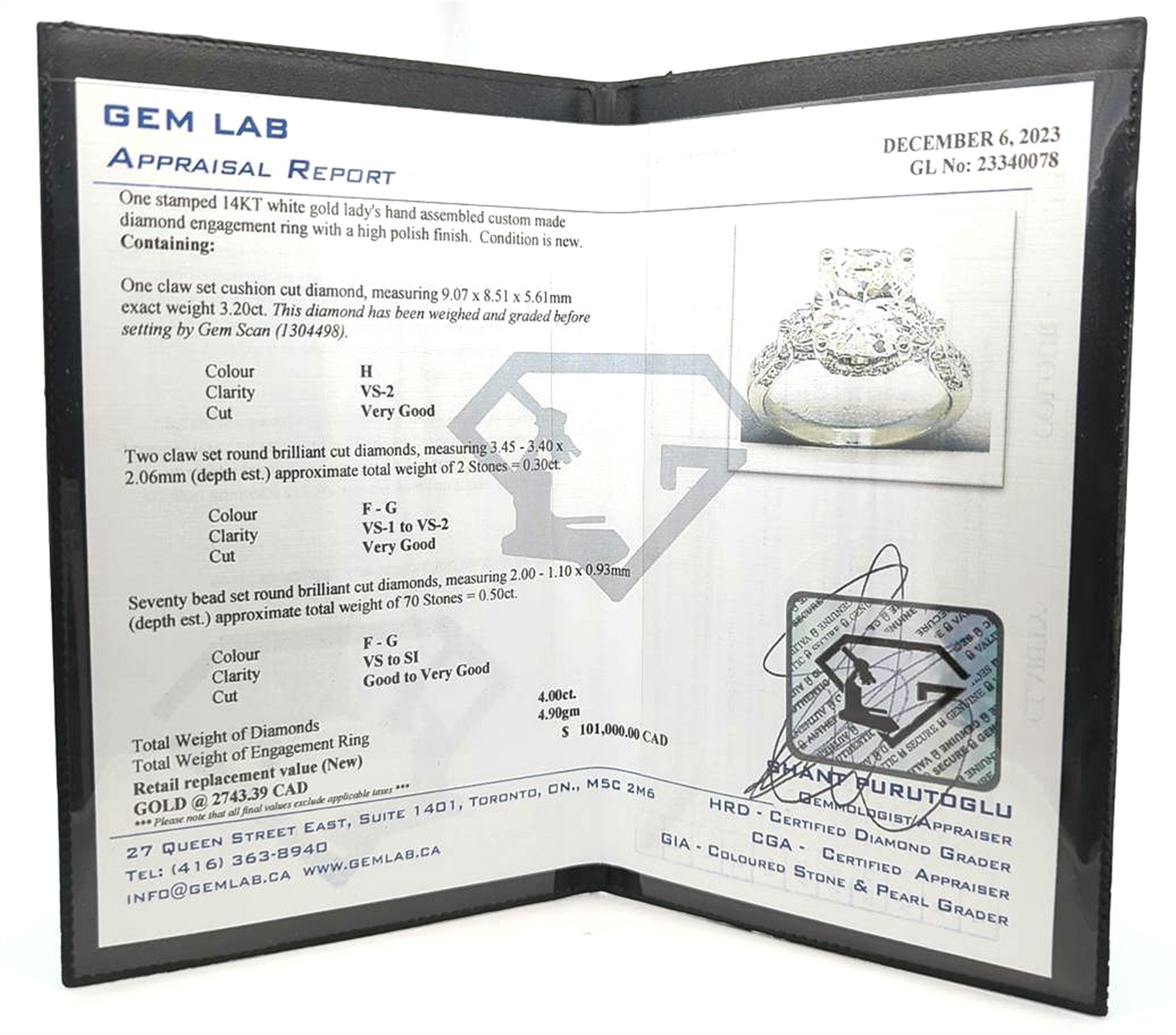 Total Weight of Diamonds 4.00ct.