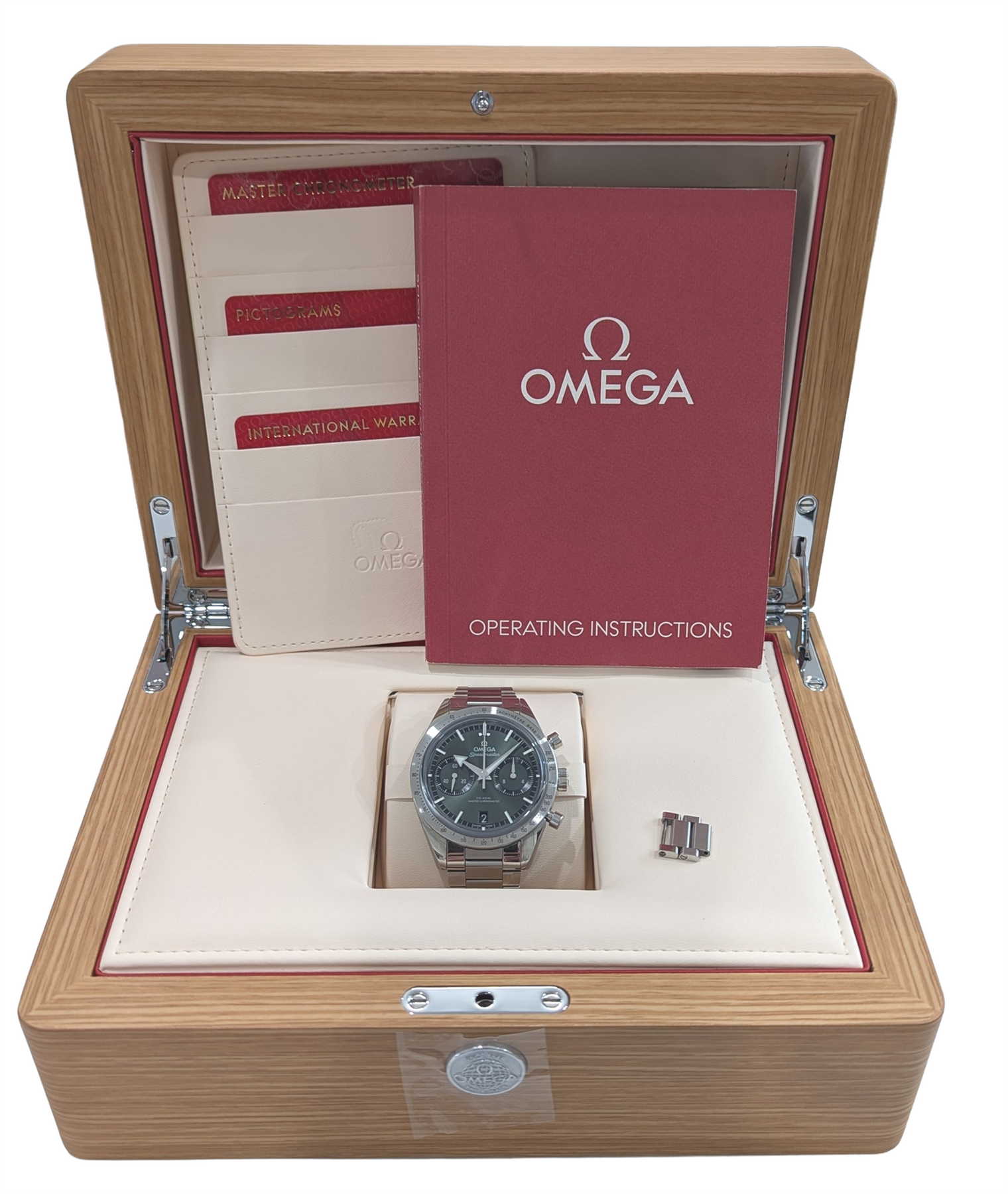 This Omega Speedmaster ’57 blends vintage inspiration with contemporary refinement. Its rich green dial, framed by a brushed stainless steel case and bracelet, offers a clean, balanced aesthetic that feels both classic and modern. Driven by Omega’s hand-wound Co-Axial Master Chronometer chronograph movement, it delivers exceptional accuracy, magnetic resistance, and a satisfying mechanical connection to the brand’s heritage. The result is a chronograph that wears with understated confidence—sporty in capability, yet polished enough for everyday sophistication.