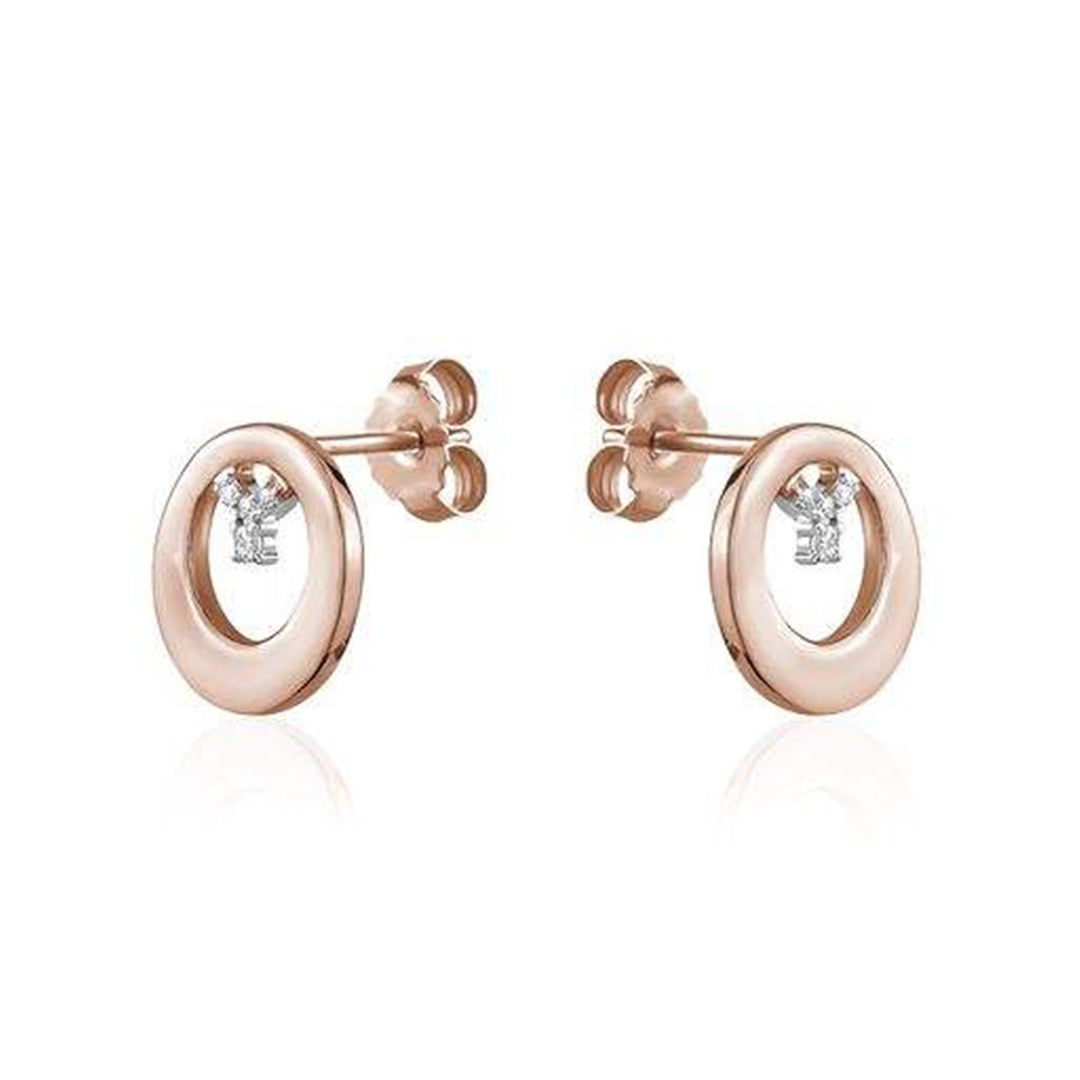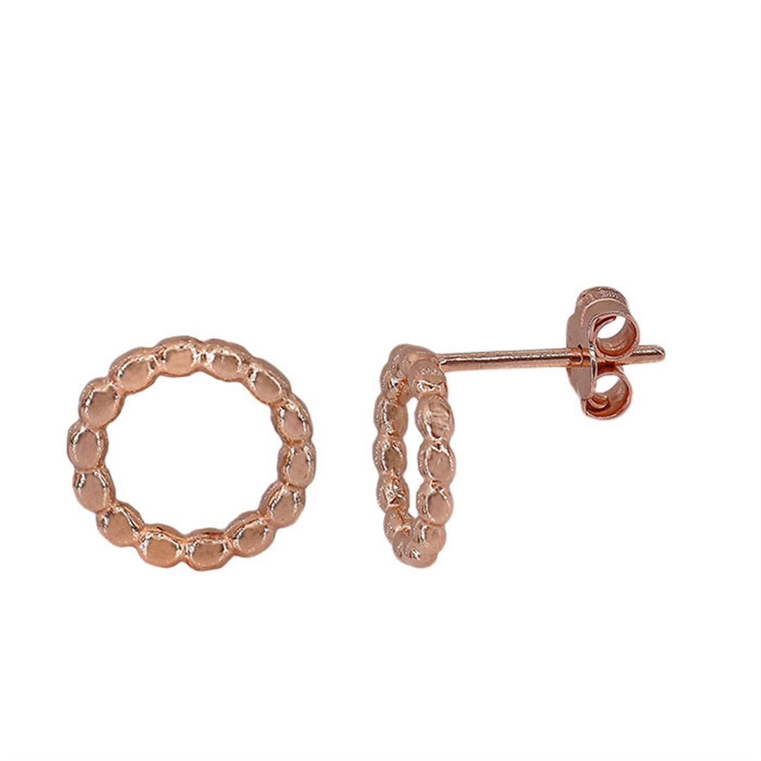 Sterling Silver Rose GOld Plated Open Circle CZ Stud Earrings