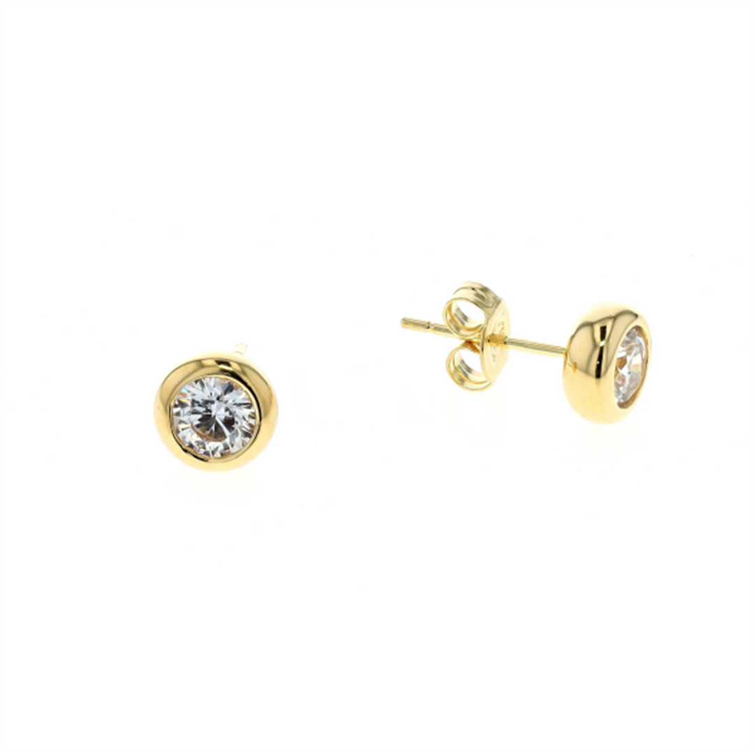REIGN Sterling Silver Gold Plated CZ Stud Earrings