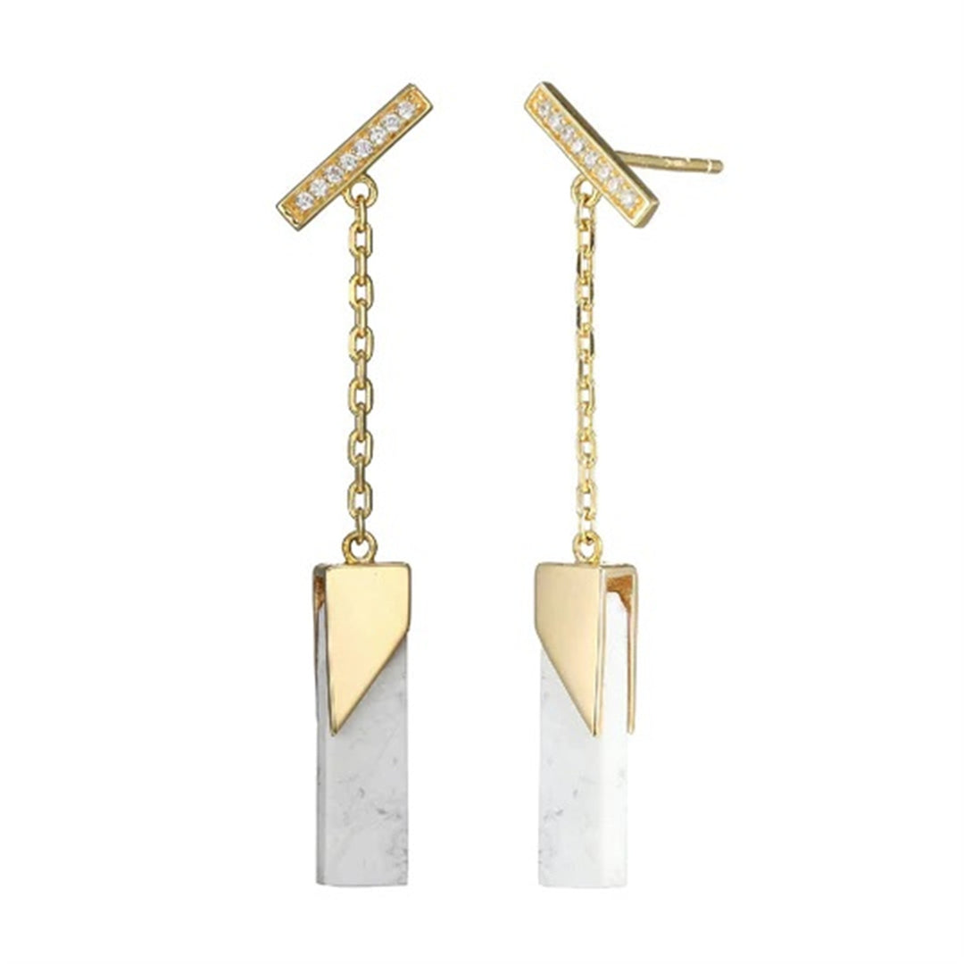Sterling Silver Genuine Howlite and CZ Bar Drop Earrings