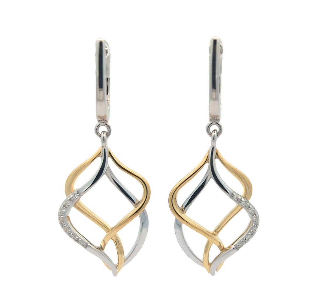 Two-Toned Sterling Silver Earrings With Cubic Zirconia