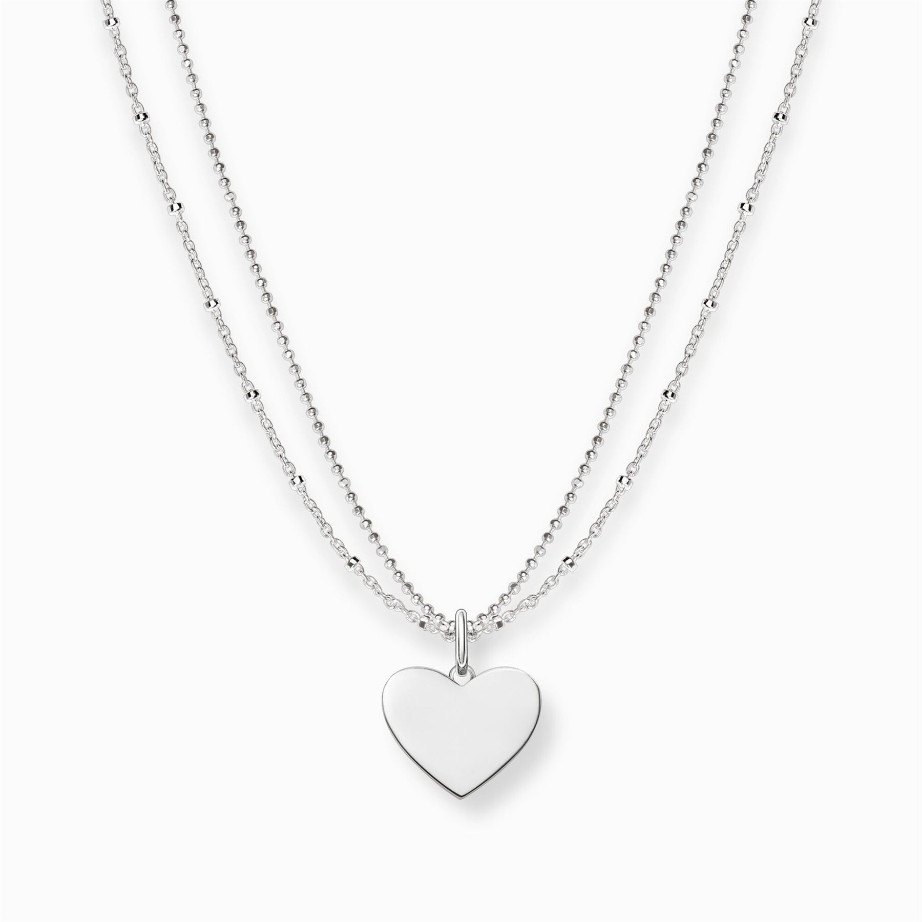 Close to the heart: the feminine engravable double chain with its heart pendant conveys delicate love through the playfulness of this item of jewellery in a sophisticated manner and embellished with the THOMAS SABO emblem on the back.