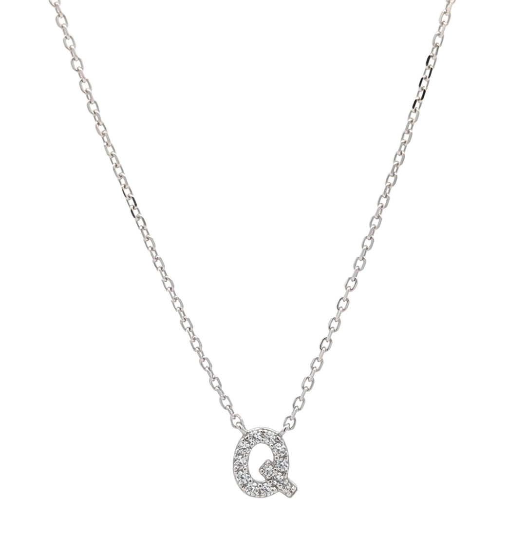 REIGN Sterling Silver CZ "Q" 18" Necklace
