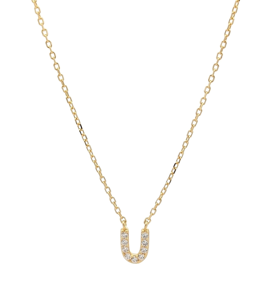 REIGN Sterling Silver Gold Plated CZ "U" 18" Necklace