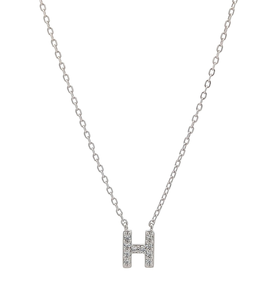 REIGN Sterling Silver Rhodium Plated CZ "H" 18" Necklace