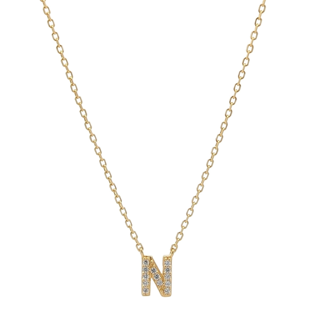 REIGN Sterling Silver Gold Plated CZ "N" 18" Necklace