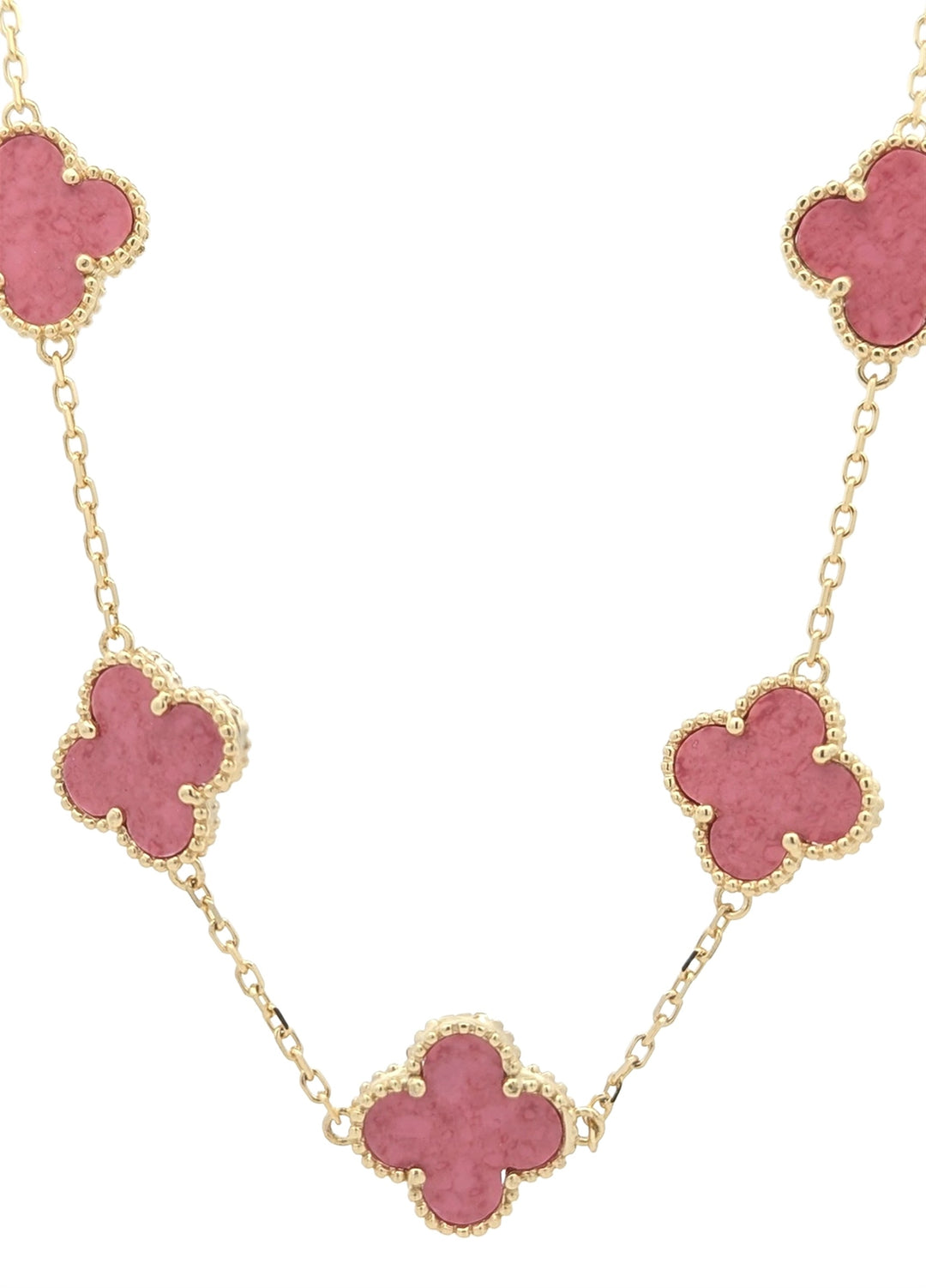 Sterling Silver Gold Plated Pink Stone Clover 35" Necklace