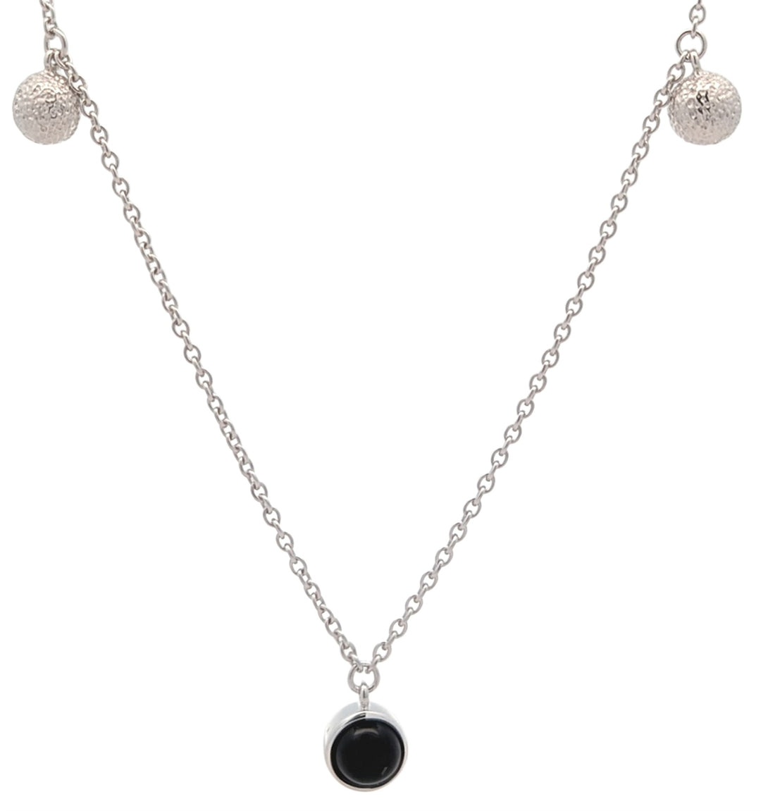 Breuning Rhodium Plated Sterling Silver Onyx 17+1" Necklace