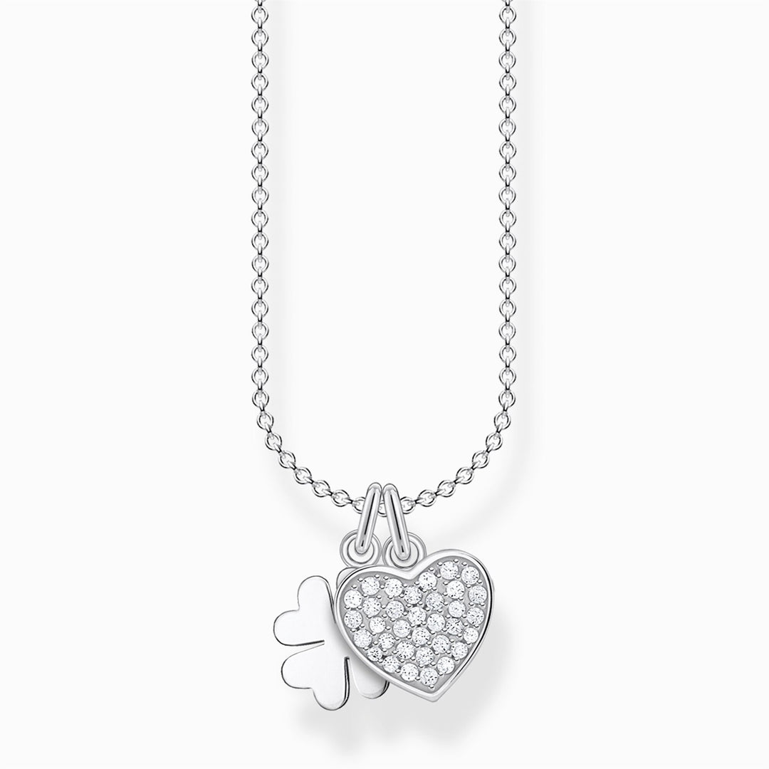 Thomas Sabo Sterling Silver Necklace Cloverleaf with Heart Pave