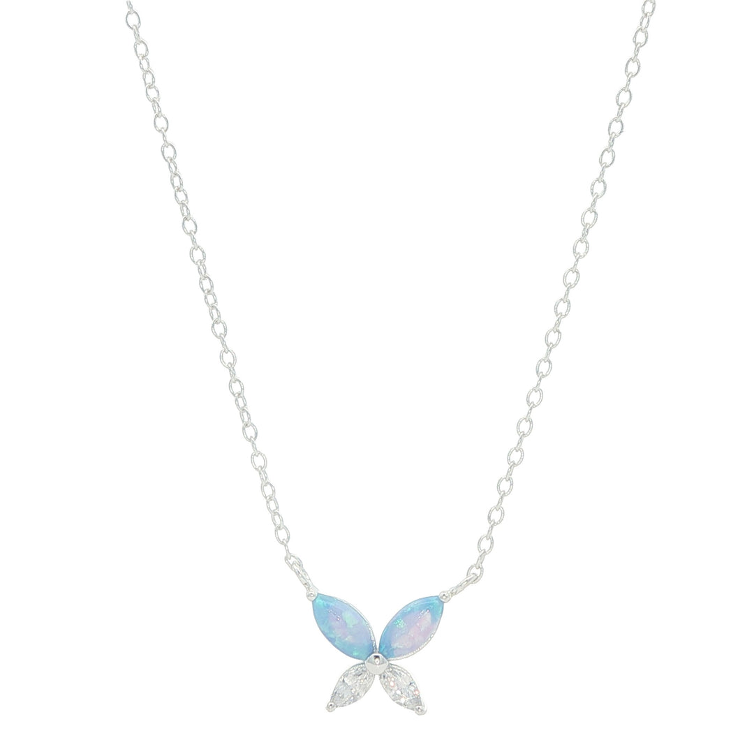 Sterling Silver Blue Opal CZ Butterfly 15+2" Necklace