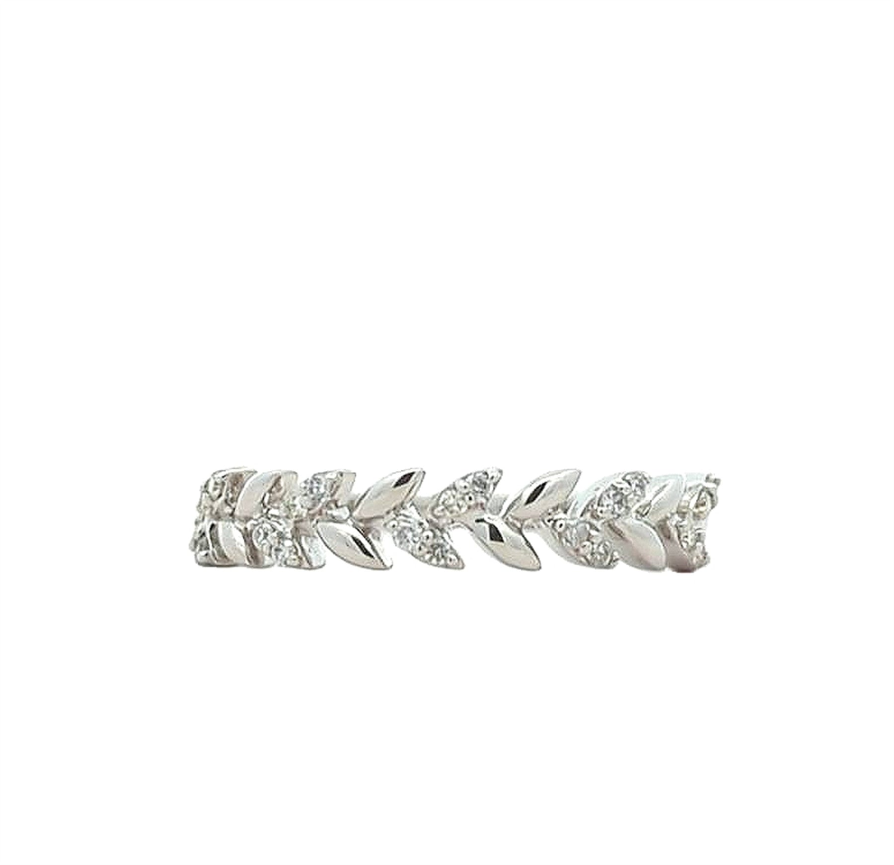 10K White Gold Diamond Leaf Band